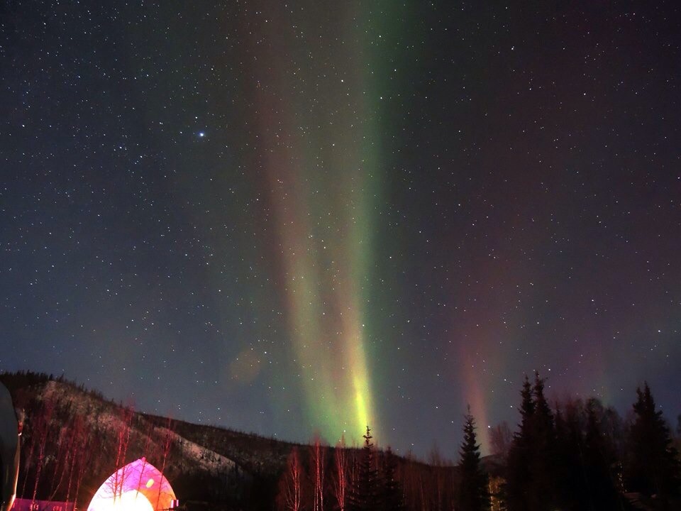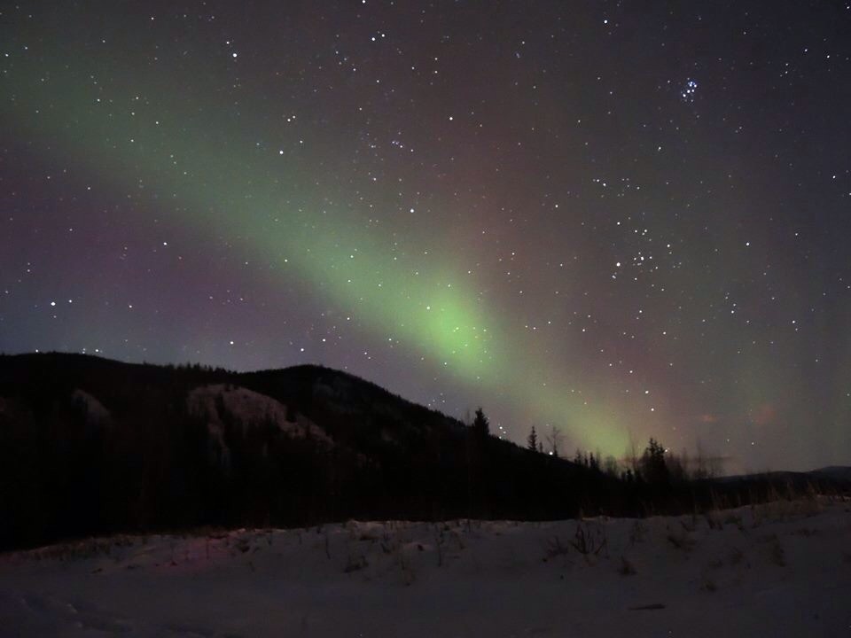 有的,據說只要在費爾班克斯待超過四天,基本上就一定能看到,聽說它全年至少有250天以上的機率能看見極光,前兩天時因為雲層太厚,我們都只看見淡淡的光在雲後飄舞,一直到最後一天我才真正遇見漫天飛舞的極光,但由於攝影器材的部分也不如專業的攝影師,就只附上幾張照片意思意思啦!
