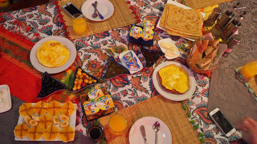 摩洛哥習慣一日多餐,當地的晚餐時間也比台灣來得晚,所以到了晚上八點鐘左右,我們才準備用晚餐。