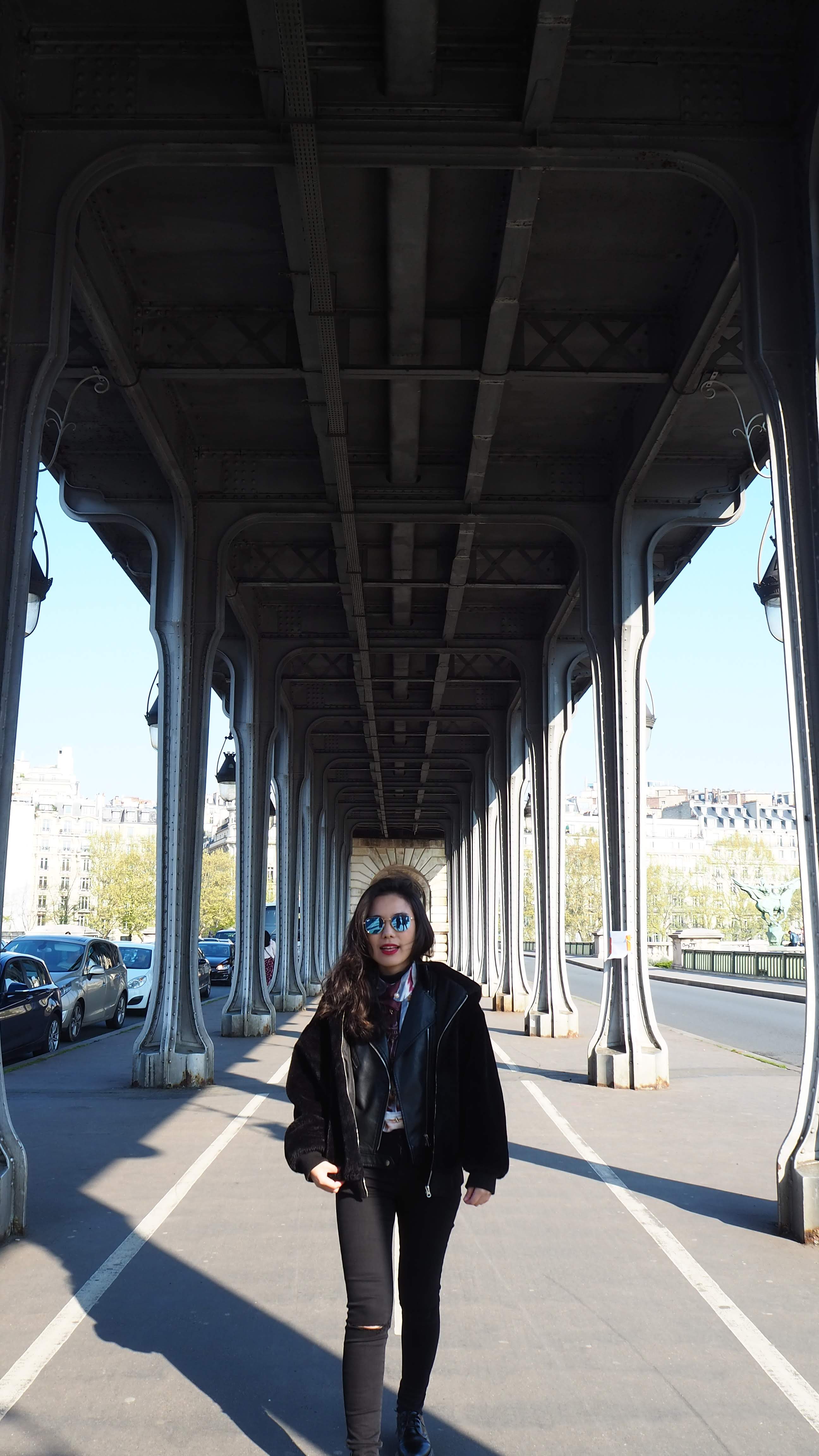 這座橋很特別,橋下是行人步行的通道,橋上是地鐵六號線的通行路線,兩旁則是車輛行經的道路;在往外側,走到另一邊的人行道上,艾菲爾鐵塔的全景現身,只是這裡離鐵塔太近了,取景並沒有想像中容易。