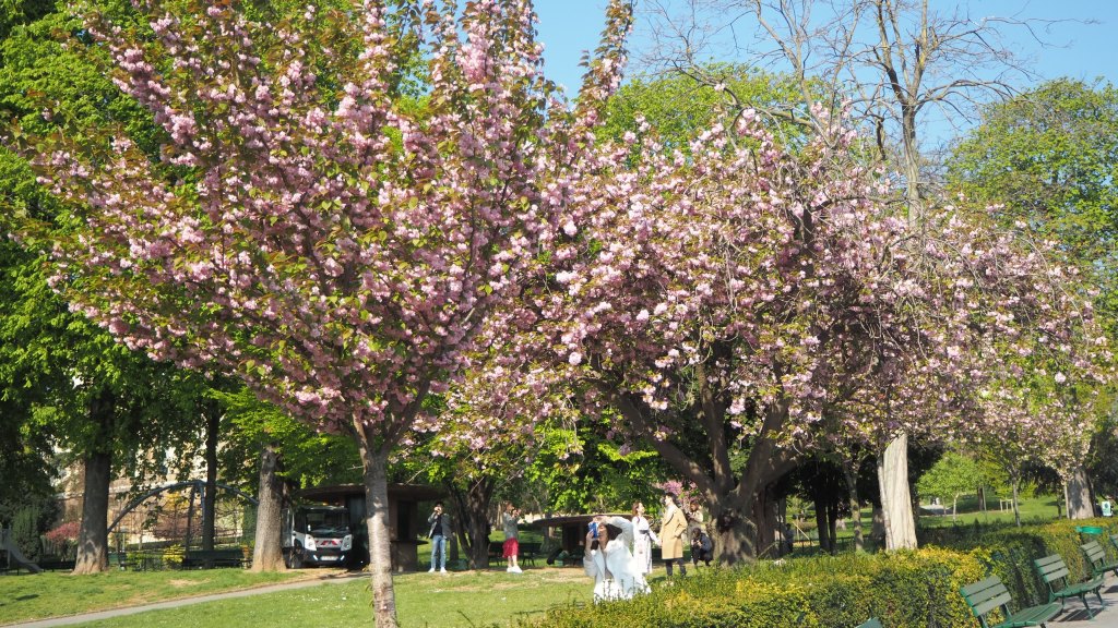 這時的巴黎剛好是四月初櫻花季,粉色的櫻花讓巴黎又增添了更多浪漫氣息;如果再晚個一週,櫻花應該會開得更滿更美吧!如果在櫻花季抵達巴黎,別忘了要追一波櫻花呀!