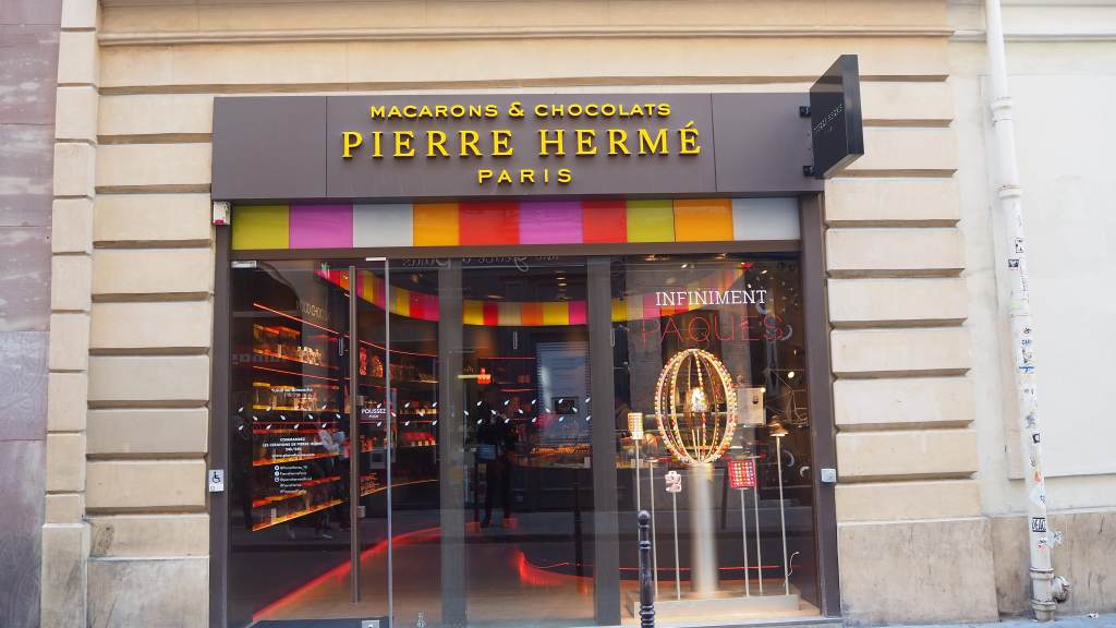 朋友們強力推薦著,而且指名一定要Pierre Herme的馬卡龍,剛好瑪黑區(Marais)就有一間分店,我們便走進店裡試試口味,店員親切地向我們介紹各種口味,並熱情地為我們準備試吃。