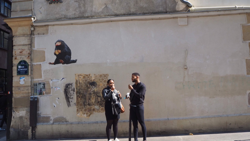 「欸!是玻璃獸!」不只店內的產品吸睛,店外的街頭也藏著許多可愛的驚喜畫作。